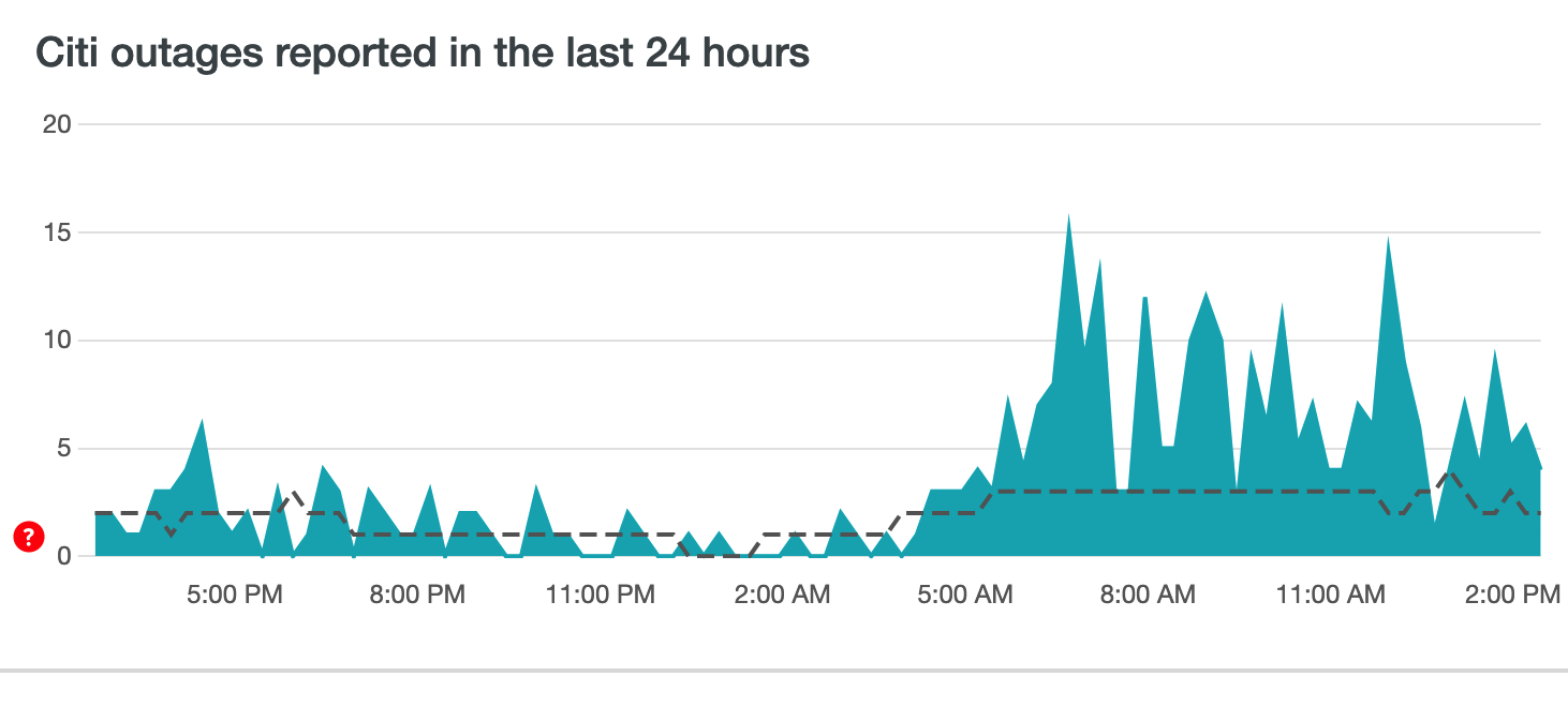 Citibank suddenly started getting hit by a spike in outages during the early morning hours on Monday too…